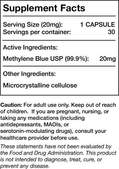 Methylene blue is a mitochondrial antioxidant that helps your cells use oxygen more efficiently. It can reduce chronic stress and inflammation, guiding the body back toward its natural balance (homeostasis).